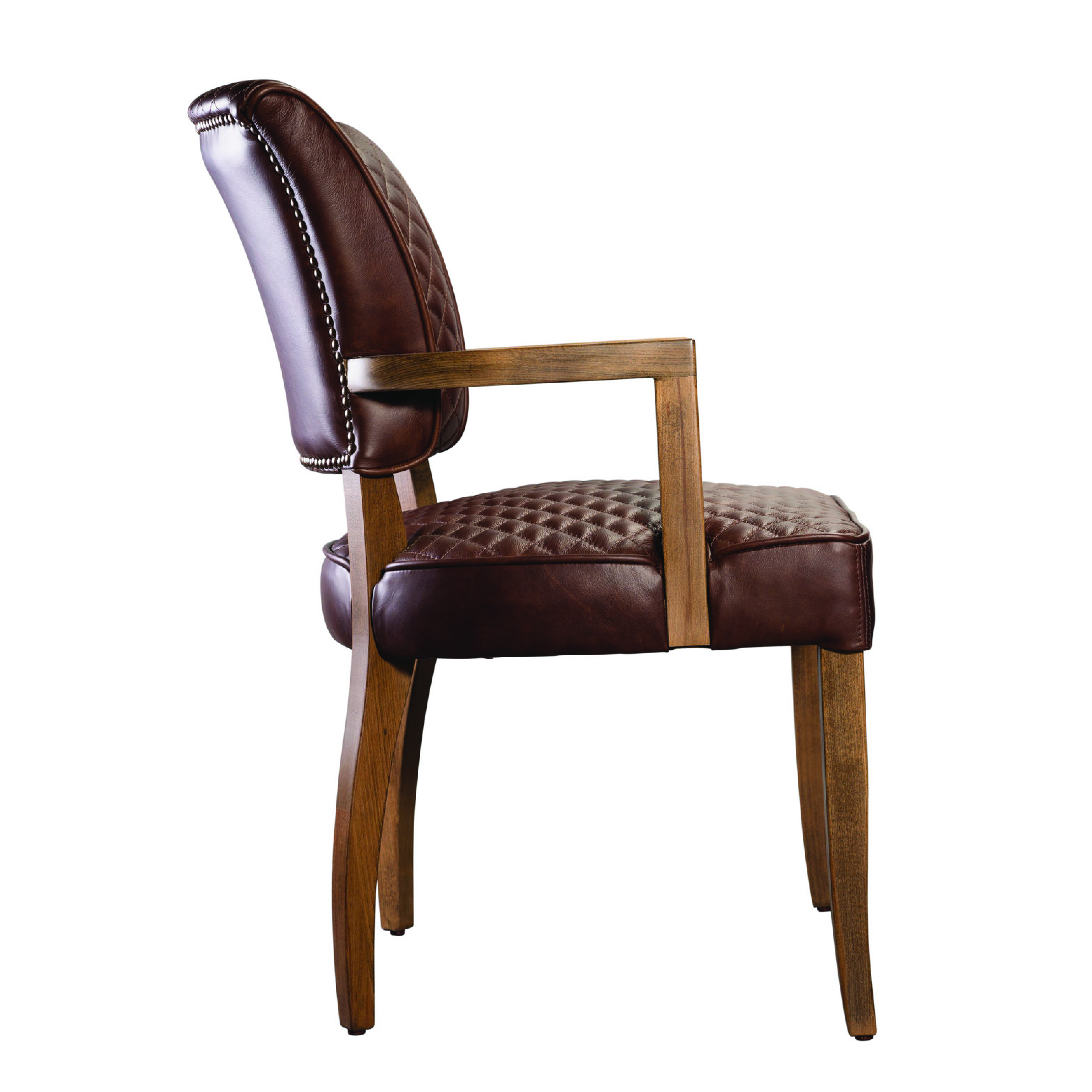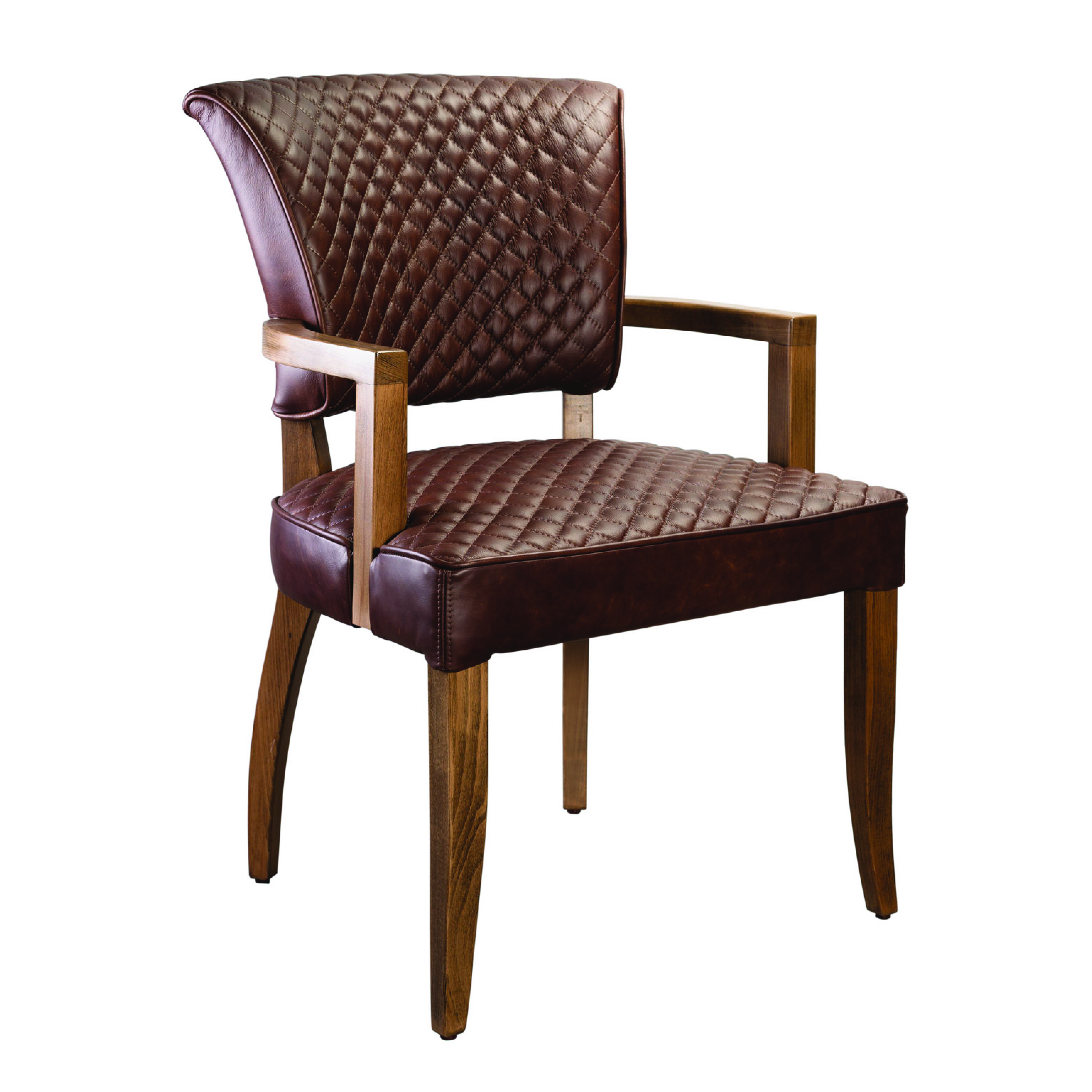 Подходящее решение для ресторанов и отелей, где важны стиль и комфорт. Декоративная стежка придает модели изысканный вид, а прочные деревянные подлокотники обеспечивают надежность и долговечность. Оригинальный дизайн спинки делает это кресло стильным акцентом в любом интерьере.