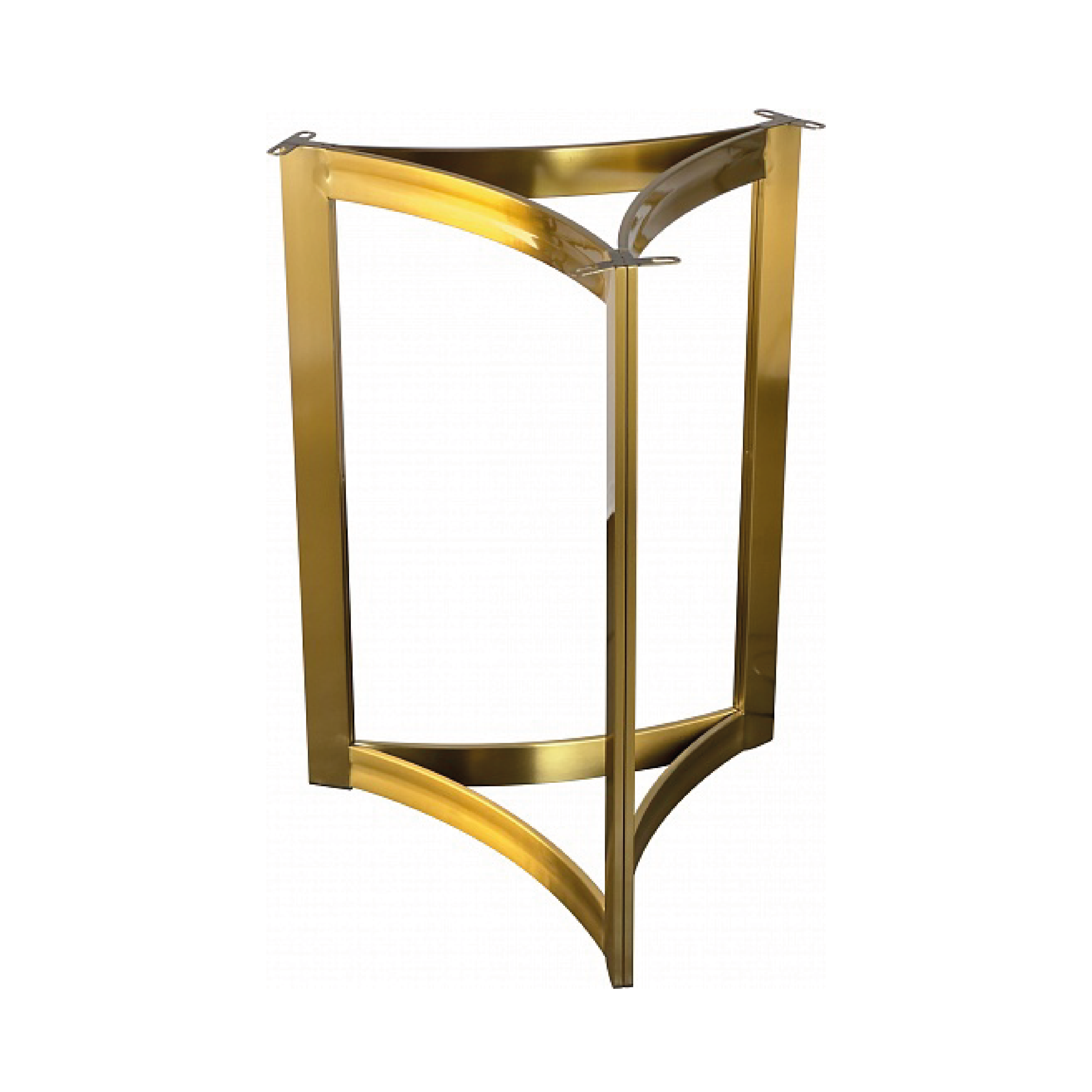 Идеально подходит для заведений с высокой проходимостью. Треугольная конструкция из нержавеющей стали с золотым покрытием (нитрид титана, сторона 52 см) обеспечивает надежную поддержку столешницам Ø60 см. Прочное лаковое покрытие устойчиво к повреждениям и сохраняет роскошный вид при ежедневном использовании.
